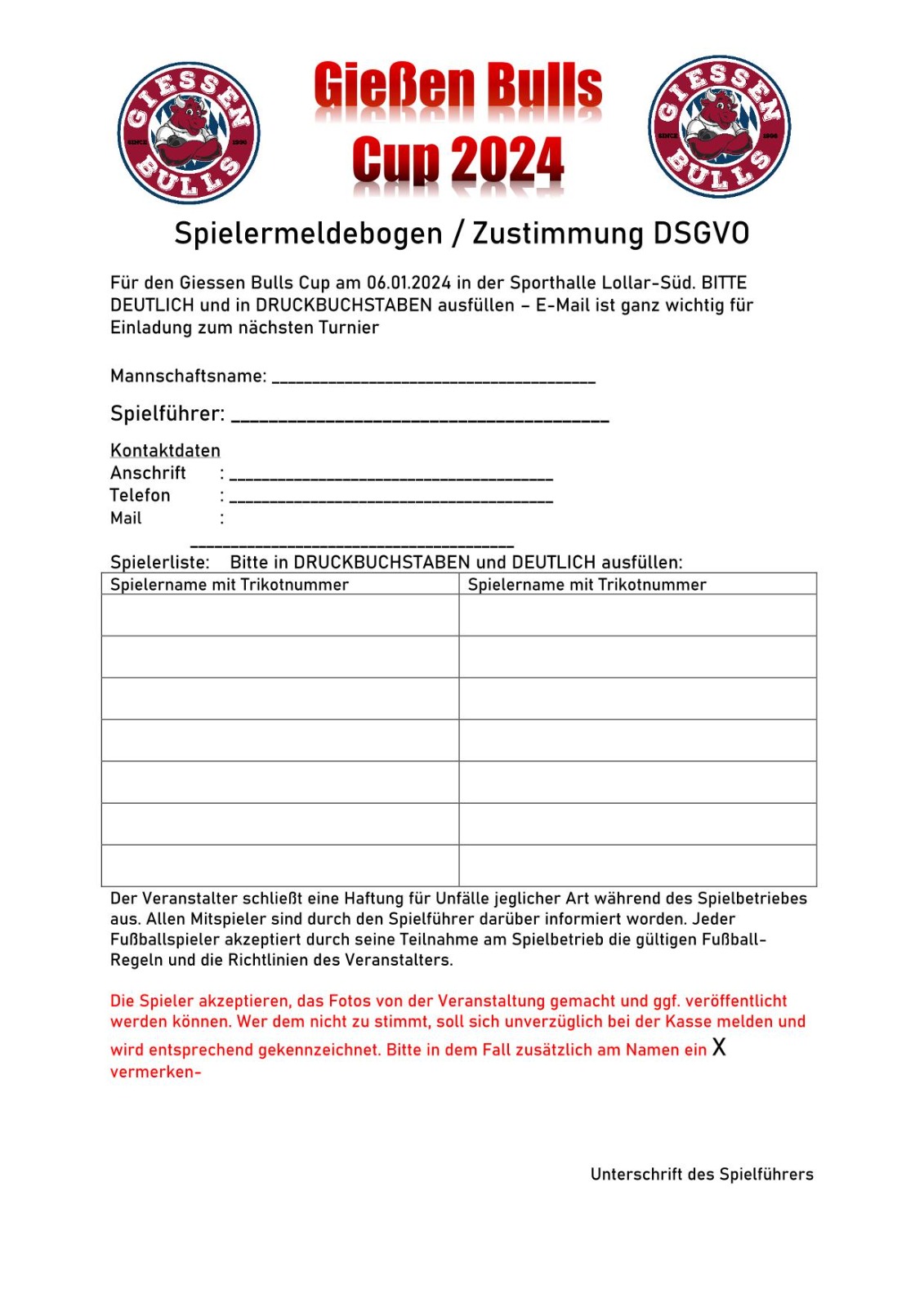 Um Mitglied bei den Giessen Bulls zu werden, füllen Sie bitte das Anmeldeformular (unter Hauptmenü) aus